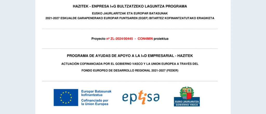 EPTISA conduce proiectul Hazitek Competitive CON4MIN ca un plan intern de cercetare și dezvoltare.